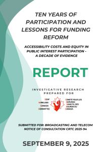 On May 12, 2025, the CRTC launched Broadcasting and Telecom Notice of Consultation CRTC 2025-94, titled Call for comments – A new approach to funding public interest participation in Commission proceedings.